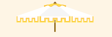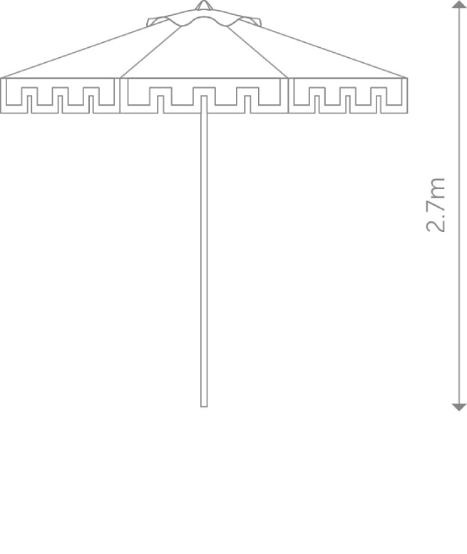 Our Amalfi parasol is based on an ‘tooth’ edged parasol, popular in the Italian Riveria in the 60’s. We have brought this back, made it a double valence, with a fun trimming of course, for extra effect.